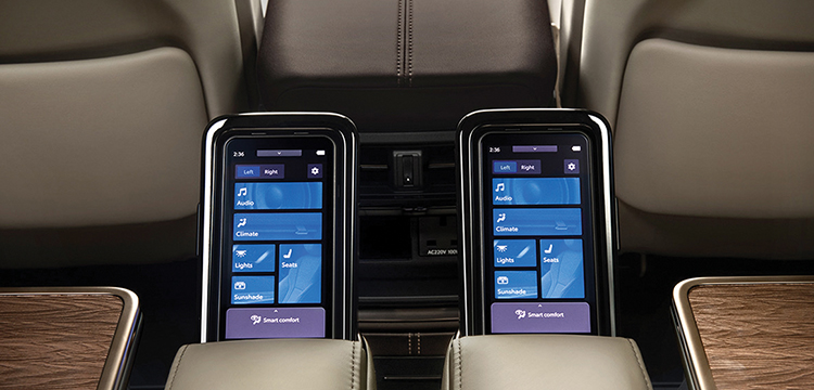 Được trang bị ở 2 vị trí hàng ghế thứ hai (ghế thương gia) giúp khách hàng dễ dàng điều khiển các tiện nghi xung quanh mình chỉ thông qua một màn hình.