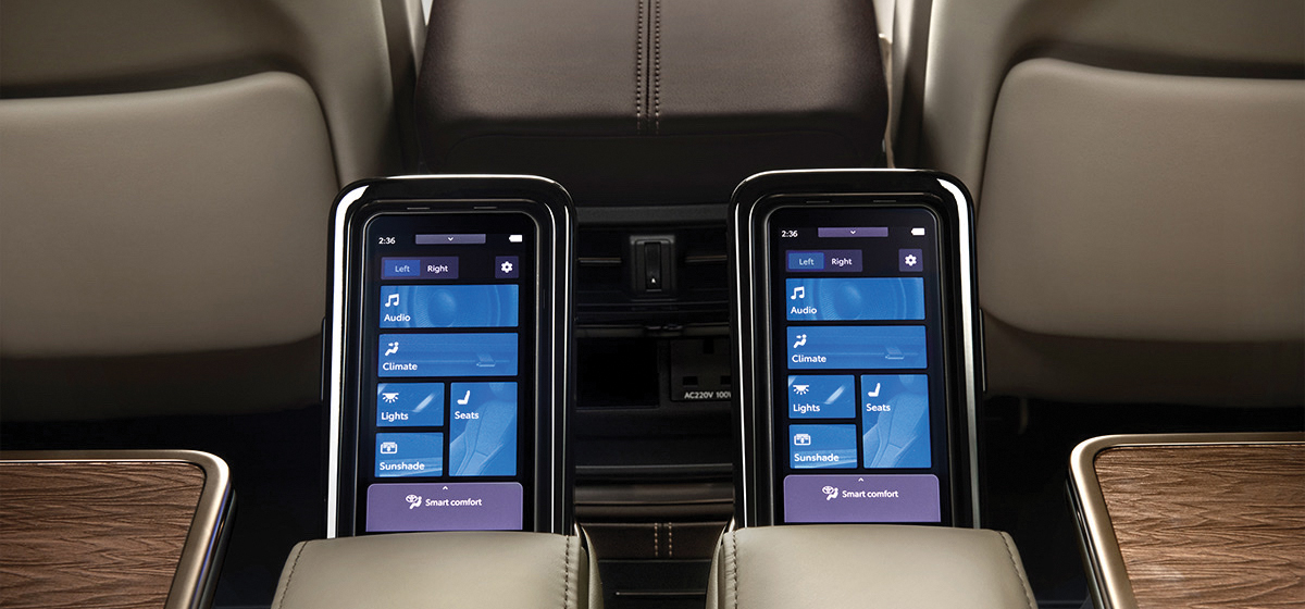 Được trang bị ở 2 vị trí hàng ghế thứ hai (ghế thương gia) giúp khách hàng dễ dàng điều khiển các tiện nghi xung quanh mình chỉ thông qua một màn hình.